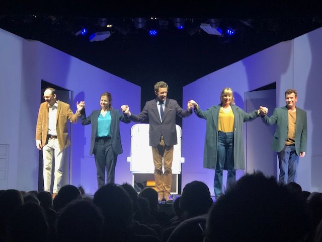 L’auteur, Gilles Dyrek, nous a concocté une comédie romantique, inventive et rafraichissante, grâce à une écriture ciselée, des jeux de mots savoureux et de nombreux rebondissements. La mise en scène au cordeau et ingénieuse d’Eric Bu, façon BD, faite de décors dessinés projetés et de subtils jeux de lumières transforme ce marivaudage contemporain en une bulle de légèreté joyeuse et poétique. Mais rien ne serait possible sans ces cinq comédiens talentueux, le couple Page Baquet mais aussi les trois autres comparses qui, par leur tourbillonnante et impressionnante valse de personnages donnent un rythme d’enfer à cette pétillante histoire d’amour pas banale. En somme, un pur moment de bonheur que cette comédie jubilatoire qui déménage!