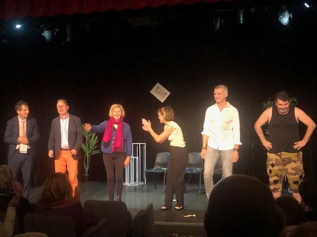 Pour qualifier cette pièce, quoi de mieux que de paraphraser cet extrait d’une chanson d’Alain Bashung : “Ma petite entreprise, connait bien la crise!”. L’auteur nous a concocté une satire jubilatoire de l’entreprise et ses travers sous la forme d’une parodie mordante et grinçante. Le texte est truculent, les répliques font mouche, et cela fait du bien par ces temps moroses. La mise en scène de ce symposium calamiteux, accumulant incidents et maladresses, est dynamique et interactive, le public étant considéré comme le personnel de “Symbiosis”. Gilles Dyrek est à la baguette de cette cacophonie chaotique et désopilante. On est chez les “Branquignols” et les “Marx Brothers”. Un Gilles Dyrek lunaire, façon Patrick Haudecoeur, chef d’orchestre de cette galerie de personnages plus extravagants les uns que les autres, interprétés par d’excellents comédiens multi cartes, au sommet de leur délire. En somme, une comédie…”Gagnante..Gagnante”! Venez vous faire embaucher!