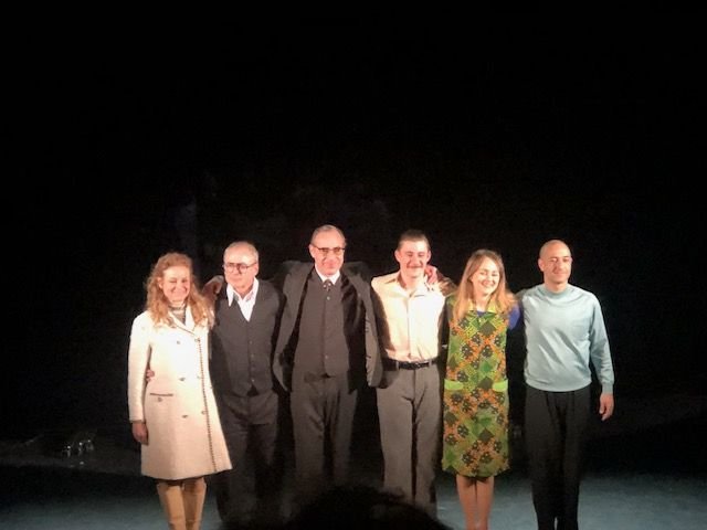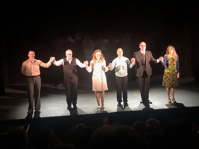 L”‘auteur Jean-Philippe Daguerre, s’est emparé de ce drame historique complexe pour en faire une pièce humaniste. Cette reconstitution émouvante et drôle, mêle étroitement la réalisation du film avec le destin de cette femme incroyable qui s’était mise en tête de réconcilier arabes et juifs en faisant un coup d’éclat. ” Vaste programme “aurait dit le Général! On revit cette époque qui a malheureusement toujours une résonnance actuelle. La mise en scène inventive exploite toutes les dernières technologies visuelles pour un résultat redoutablement efficace. Ell mérite pour cela un Molière en mai. Tous les comédiens sont au sommet de leur art. Bernard Malaka nous campe un Georges Cravenne (créateur des Césars et des Molières) très réussi et Charlotte Matzneff, une idéaliste convaincante. Si Bruno Paviot passe avec aisance de Gérard Oury au ministre Marcellin, la palme revient à Julien Cigana plus vrai que nature dans le costume de De Funès, mimiques et danse comprises. ” Georges, vous êtes juif?”. Ne manquez pas cette dernière pépite de l’auteur qui, en bon orfèvre, a l’art de transformer tout ce qu’il touche en or.