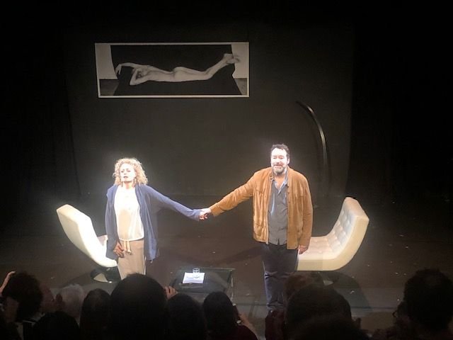 L’auteure nous offre ici un hymne à l’amour éternel, une histoire d’amour complexe pleine de passion, de mensonges de doute et jalousie. On assiste à une relation tourmentée entre une femme manipulatrice et un homme qui a peur de s’engager. On explore avec eux les méandres du sentiment amoureux, lors de ce chassé-croisé entre anciens amants. La mise en scène plutôt discrète laisse le champ libre aux comédiens. Une très belle musique de jazz apporte une note romantique et mélancolique à ce face à face ambigu et complexe. Les deux comédiens sont investis dans leur rôle, mention particulière pour Thomas Le Douarec, charismatique et impressionnant. En somme, un “je t’aime moi non plus du XXIème siècle”.