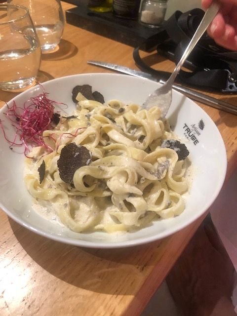 Vous trouverez à cinq minutes à pied du théâtre, attirés par la subtile odeur de truffe, une bonbonnière dédiée à ce “tubercule”, et où la maitresse des lieux, portant à merveille son prénom, “Ange”, vous recevra avec le sourire et vous fera partager la délicieuse saveur de sa cuisine.