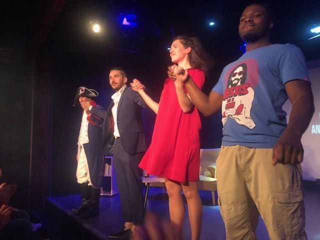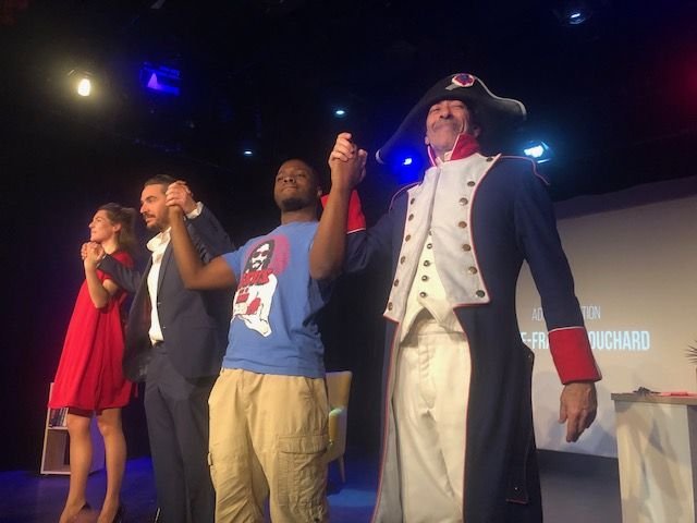 Faire revenir Napoléon à notre époque pour y remettre de l’ordre est une excellente  idée! et il y a du boulot!  Les auteurs nous ont concocté un petit bijou d’écriture où les répliques y sont cinglantes et percutantes, et les dialogues savoureux.  Ils abordent avec un humour décapant les problèmes de notre époque: écologie, élections, droit des femmes, personnel politique… Tout le monde en prend pour son grade! C’est jubilatoire! Notamment le passage sur nos présidents de la 5ème. La mise en scène est dynamique, sans temps morts, aidée en cela par une subtile vidéo. On est embarqué dès le lever de rideau par cette aventure déjantée à l’humour second degré. Les quatre excellents comédiens avec à leur tête un Eric Delcourt en Napoléon plus vrai que nature, font montre d’une belle complicité et d’une énergie communicative à toute épreuve. En somme, une comédie inventive, pétillante et surtout…bien “troussée” !! Vive l’Empereur !!