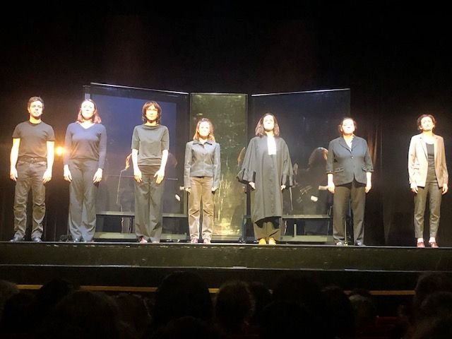 Ce vibrant hommage à Maître Gisèle Halimi qui a permis aux femmes d’être libre de disposer de leur corps est un moment rare, magique, chargé en humour et émotion. A conseiller aux jeunes afin qu’ils se rendent compte du parcours du combattant qu’il a fallu pour en arriver là aujourd’hui, et encore, rien n’est jamais acquis. Les deux auteures nous ont concocté un texte brillant, intelligent et qui interpelle. La mise en scène astucieuse et dynamique, sans temps morts, ainsi que les ingénieux décors et scénographie servent de catalyseur à ces six admirables comédiennes -deux nominations- (plus un comédien) bouleversantes de justesse dans cette exceptionnelle leçon de vie qui s’achève par un remarquable plaidoyer final qui fait se soulever la salle enthousiaste. Une piqûre de rappel bien nécessaire car cinquante ans après, le combat pour la place des femmes résonne toujours. Restons vigilants.